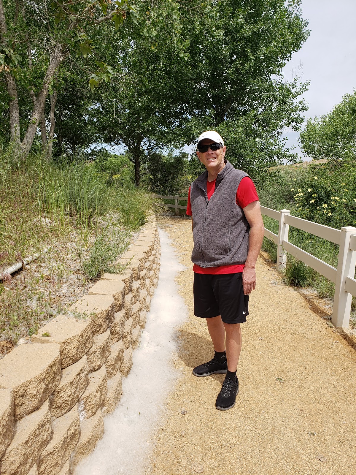 We had a nice week of activity here in Four Seasons. We went on a couple of 1.25 mile hikes and capped the week off with a 2.2 mile through the cottonwood trees. You can see the cottonwood seeds floating through the air and landing on the ground. Here in the first pic they were backed up against a retaining wall looking a lot like snow. Luckily we don't appear to be allergic to them.
